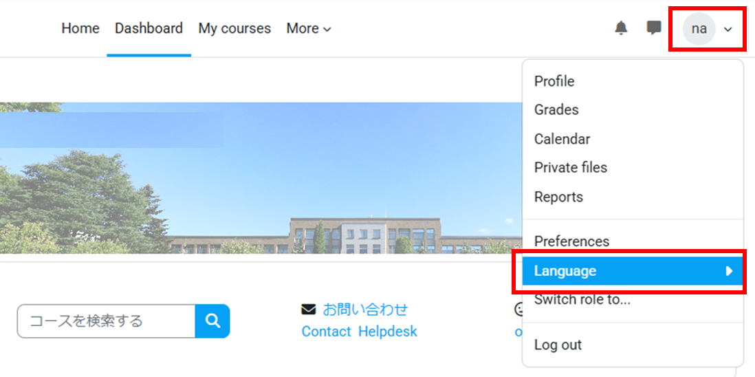 コースが見つからない場合には、helpdeskまでお問合せください。